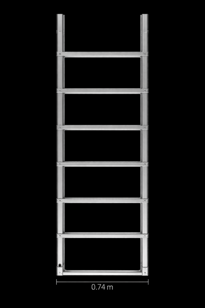 Kevyt, hitsaamaton ja kestävä alumiininen 2 m päätykehys telineisiin. Suunniteltu suurille kuormille ja nopeaan, turvalliseen asennukseen.